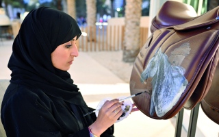بالرسم على الجلود تحتفي الفنانة الإماراتية أميرة أحمد العفيفي، بالتراث وعناصره المختلفة، معتبرة أنه من أقرب الموضوعات
