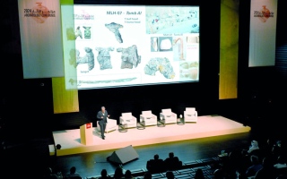 عرض علماء متحجرات، أمس، في البيرو، متحجرة نادرة لتمساح بحري صغير، يعود تاريخها إلى ما قبل 10 إلى 12 مليون سنة، عُثر