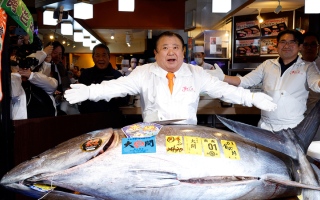 دفع مالك سلسلة مطاعم سوشي مبلغاً قياسياً قدره 3.27 ملايين دولار (510.3 ملايين ين) مقابل سمكة تونة زرقاء عملاقة، طُرحت